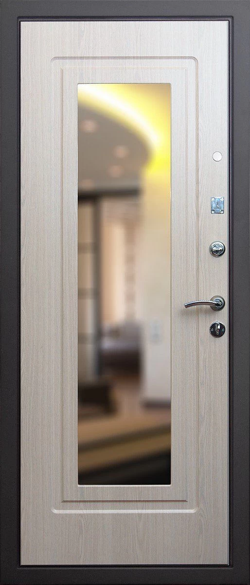Прочная металлическая Дверь с зеркалом DZ385 по цене от 30 000 руб. под заказ в любой комплектации. Вы можете выбрать материал, замки, цилиндры и многое другое. Производим сами! Быстрая доставка и установка в Павловском Посаде.