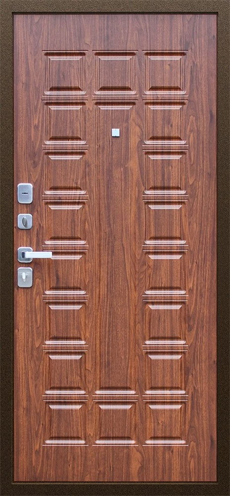 Надежная входная Дверь Спартак Орех темный премиум класса по цене 35 860 руб. Большая толщина стали защитит от проникновения в ваш дом, квартиру или коттедж. Используется очень качественная фурнитура: замки, цилиндры, ручки, защелки. Покрытие и отделка двери изготовлено под внимательным контролем производителя. Дверь имеет долгий срок службы и гарантию.
