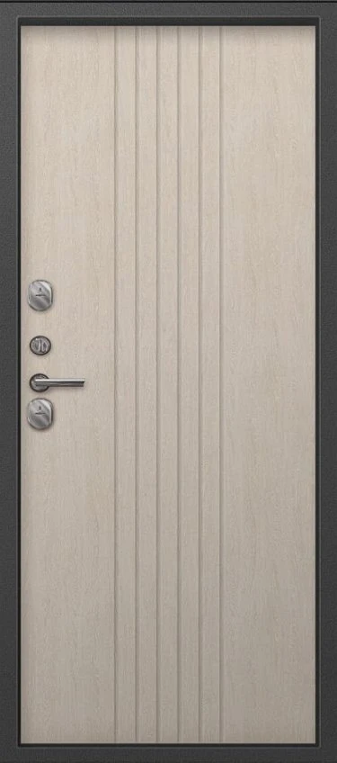 Надежная входная Дверь Термо-90 графит букле - седой дуб премиум класса по цене 40 160 руб. Большая толщина стали защитит от проникновения в ваш дом, квартиру или коттедж. Используется очень качественная фурнитура: замки, цилиндры, ручки, защелки. Покрытие и отделка двери изготовлено под внимательным контролем производителя. Дверь имеет долгий срок службы и гарантию.